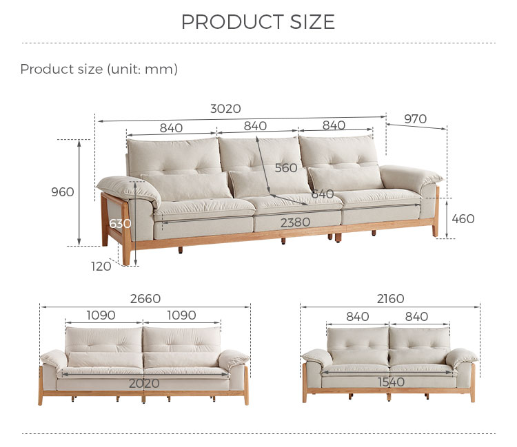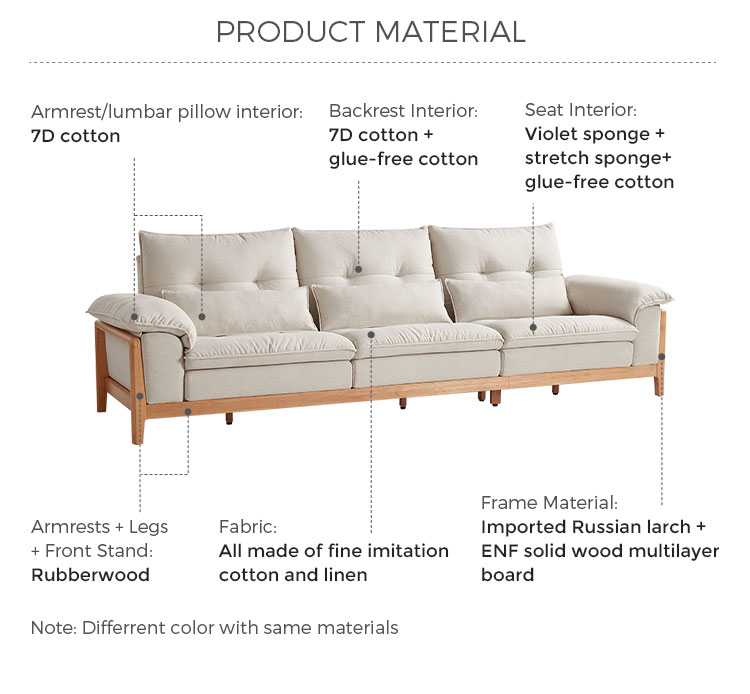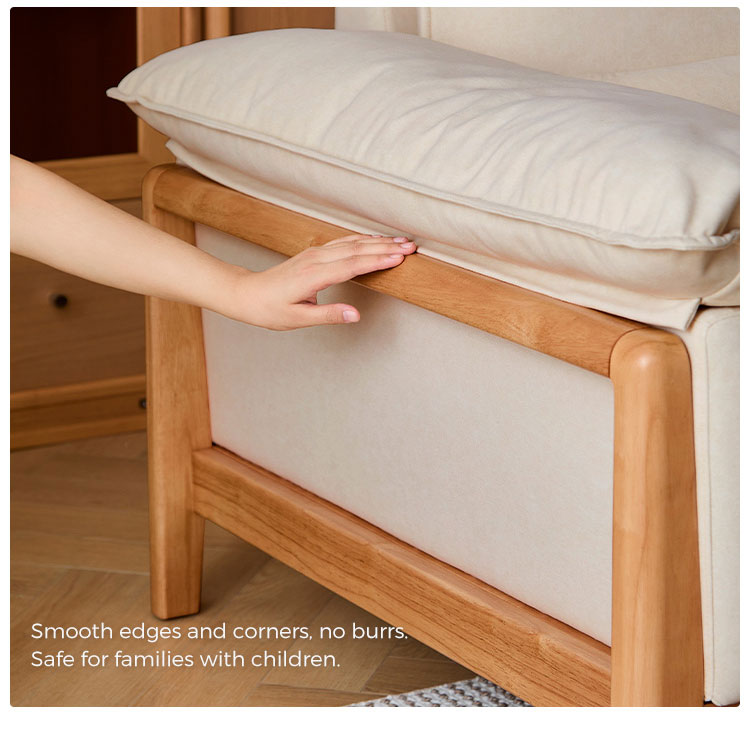 Structure en bois massif + Assise en mousse + Tissu |