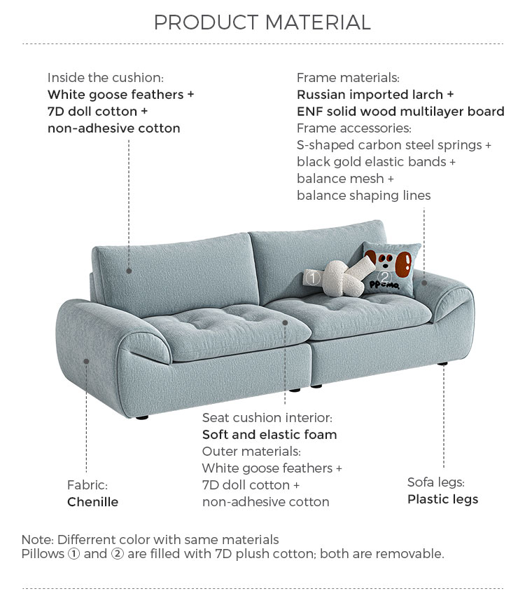 Confort ultime : Mélange haut de gamme de plumes naturelles et de coton PP hautement élastique pour une assise « comme sur un nuage ».
