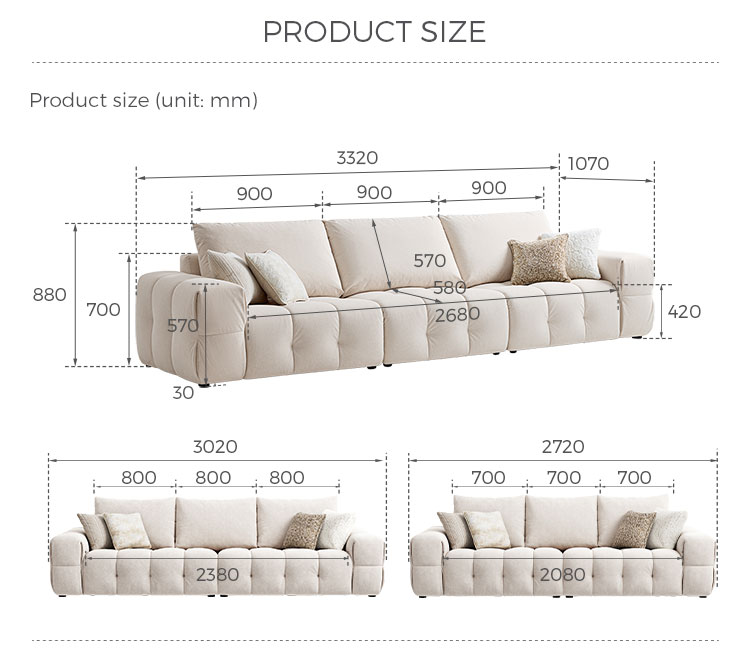 *Conception spéciale : Les coussins du dossier présentent un motif de surpiqûres verticales sur mesure, rappelant le tofu classique.