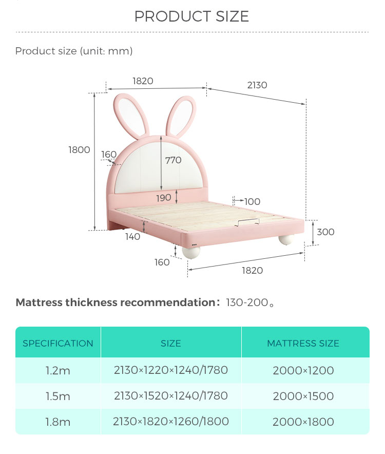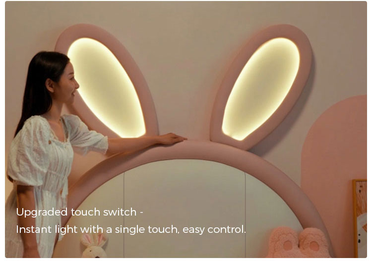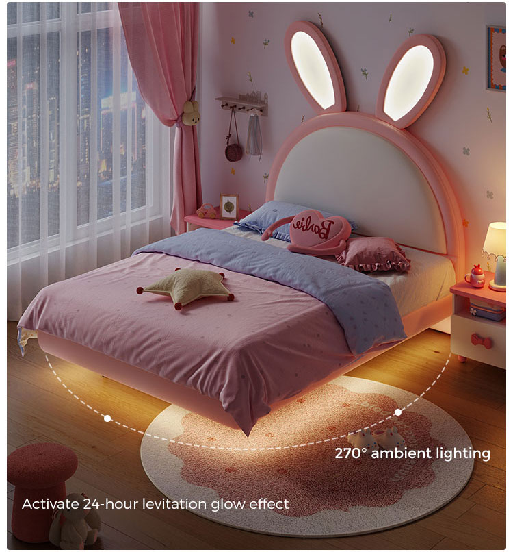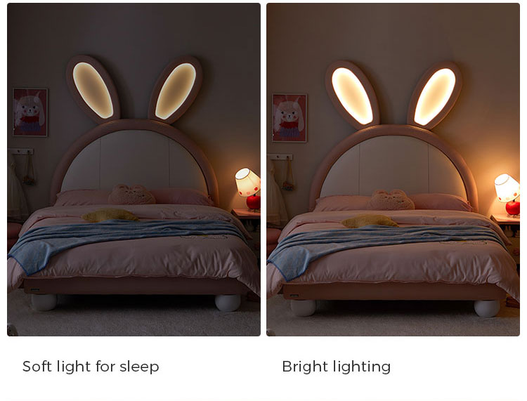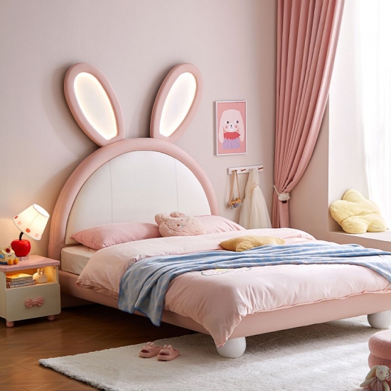 7Lit lapin rose LINSY avec oreilles lumineuses réglables et revêtement en cuir PC131-A