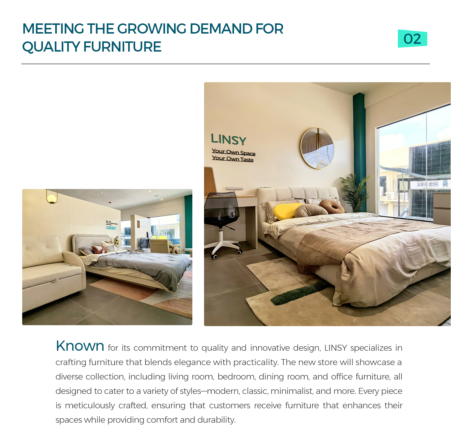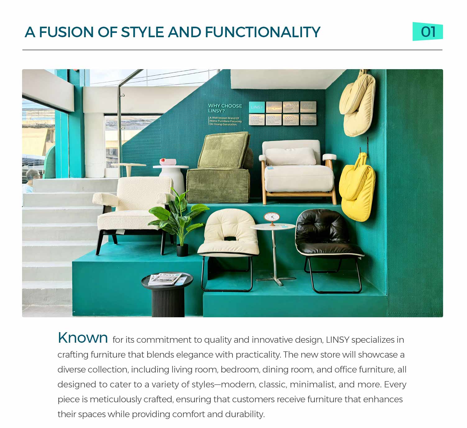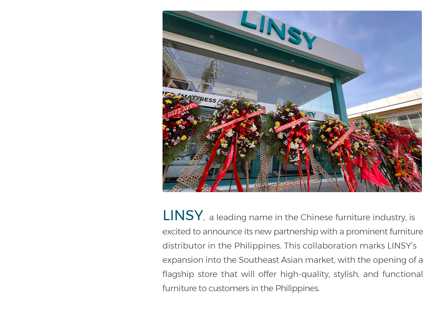LINSY, un nom leader de l'industrie chinoise du meuble, est ravi d'annoncer son nouveau partenariat avec un important distributeur de meubles aux Philippines. Cette collaboration marque l'expansion de LINSY sur le marché de l'Asie du Sud-Est, avec l'ouverture d'un magasin phare qui proposera des meubles de haute qualité, élégants et fonctionnels aux clients des Philippines.