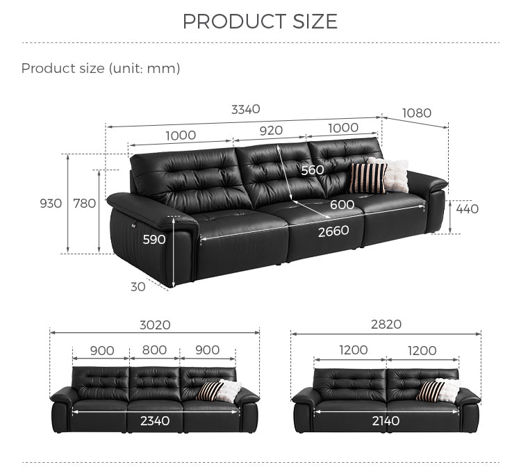 | Nom du produit | Canapé en cuir foncé de style moderne du milieu du siècle PS551-A |