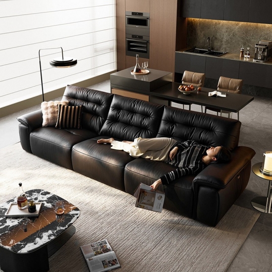 7Canapé en cuir foncé de style moderne du milieu du siècle PS551-A