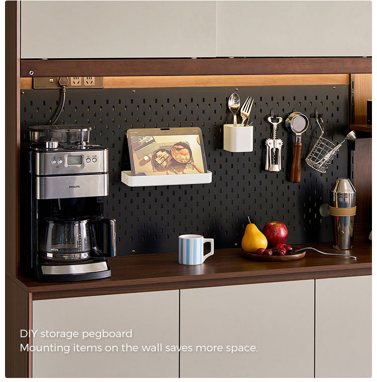 Conception à plusieurs tiroirs et panneau perforé – Combine des tiroirs à glissières fluides avec des panneaux perforés réglables pour une organisation personnalisée.